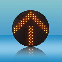 Φ200/300/400型黃箭頭信號燈板 1、高亮度:LED燈適用高亮燈珠,效果更具色彩;